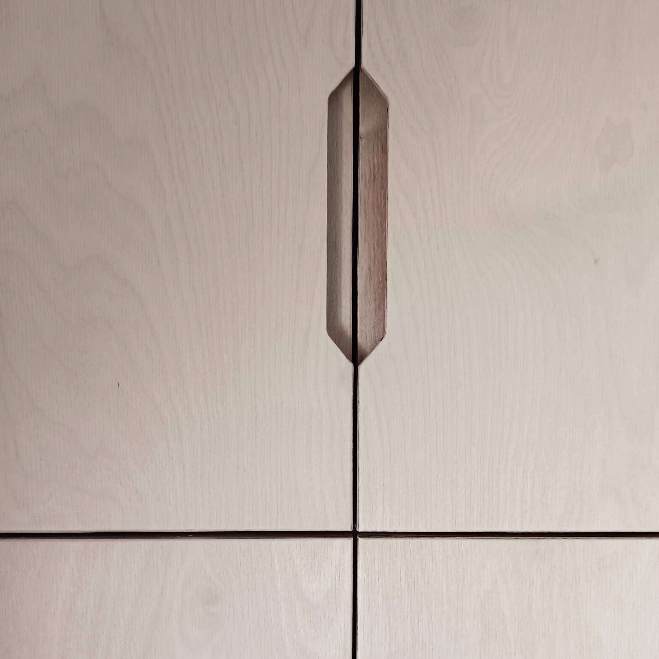 Discreet handles create a minimalist aesthetic that blends effortlessly into modern or contemporary interiors. This custom carpentry solution is ideal for bedrooms, hallways, or multifunctional spaces where efficient storage and tailored design are essential.